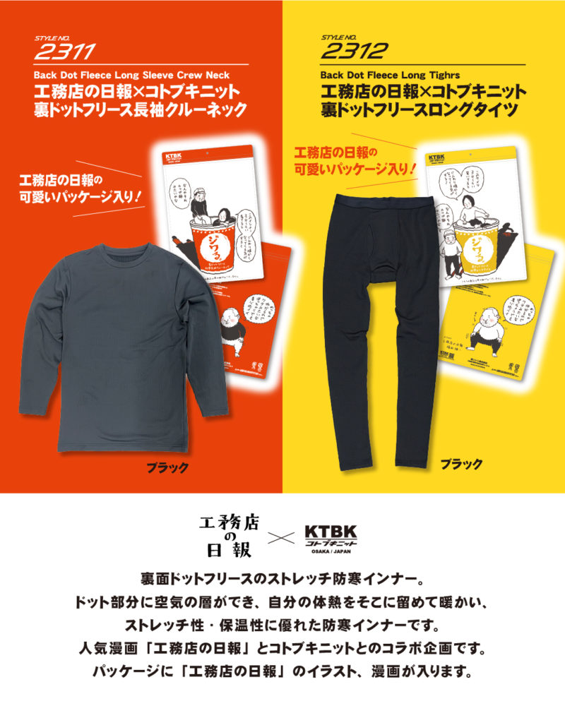 『工務店の日報』著者・福田雄一がパッケージデザインを担当! 寿ニットの防寒インナーに「現場あるある」のユーモアをプラス!